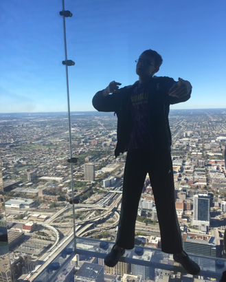 After wake up and breakfast, we were on our way to our first attraction of the day, the Willis Tower. After a long line and a 103 story elevator ride, we made it to the top and got a magnificent view of the Chicago skyline. The 103 floor has three main features, a few lookout points, and gift shop, and most exciting, a glass observatory. From this view, you can look down and see the city streets beneath you.