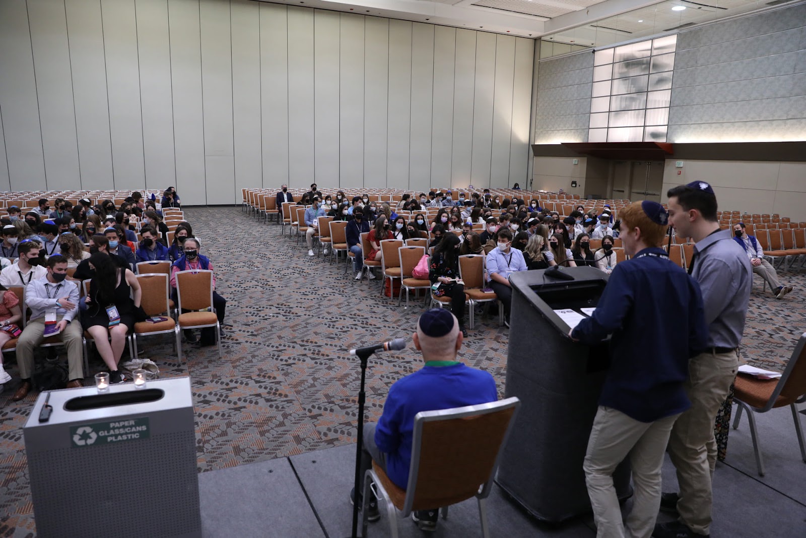 The Power of Remembrance Kabbalat Shabbat Service at BBYO IC 2022 in Baltimore with Sami seated beside the podium.